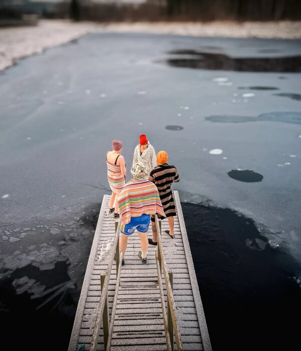 Isbading og badstue